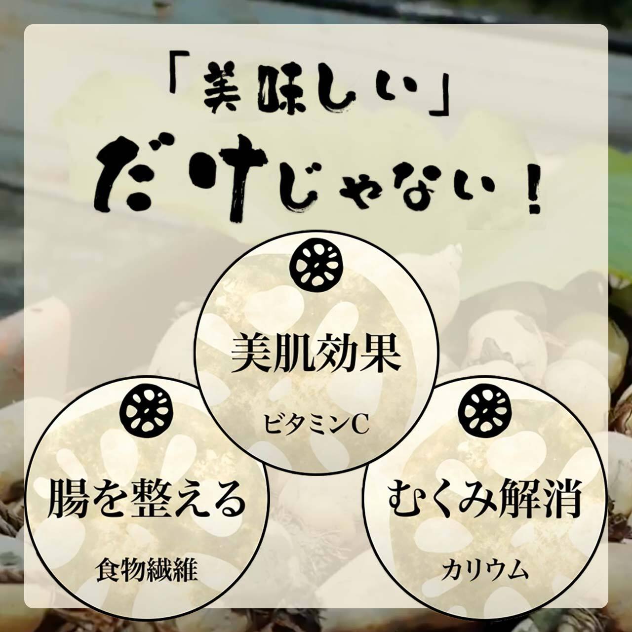 ・自然栽培されたれんこんのみを使用。日本、佐賀県白石町で丁寧に育てられた自信作です。
